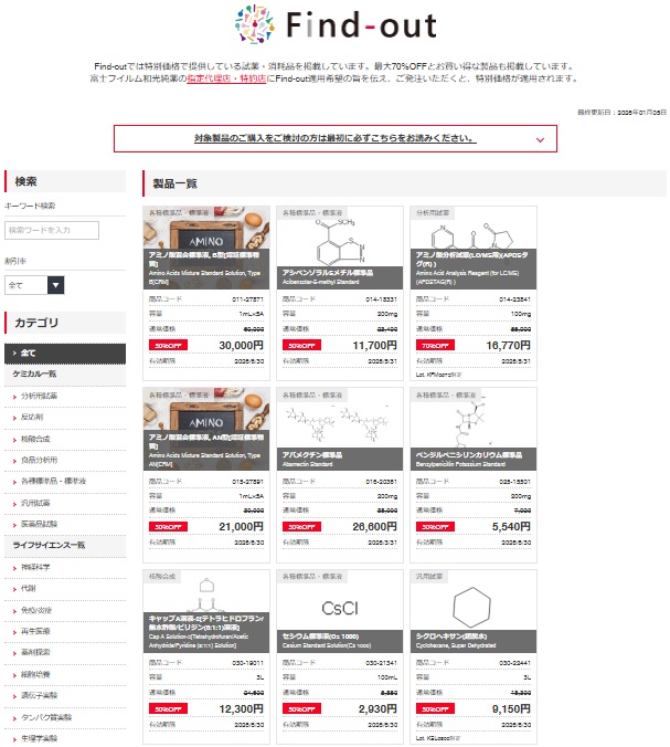 Find-outでは特別価格で提供している試薬・消耗品を掲載しています。
