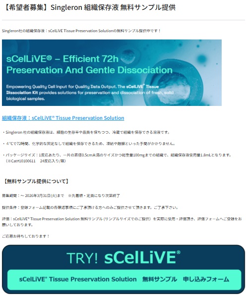 「【希望者募集】Singleron 組織保存液 無料サンプル提供」