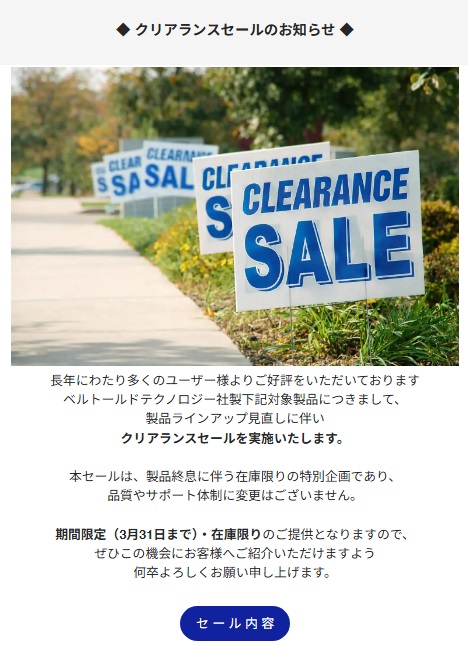 見直しに伴いクリアランスセールを実施いただいております!